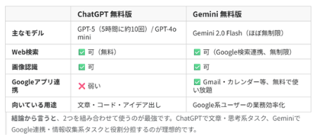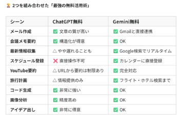 🏆ChatGPT 無料版 と Gemini 無料版 2つを組み合わせた「最強の無料活用術」