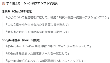 10. ChatGPT 無料版 と Gemini 無料版 📋 すぐ使える!シーン別プロンプト早見表