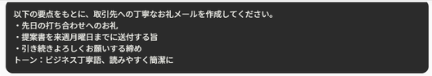 – 「このメールをもっとやわらかいトーンに変えて」とリライト依頼
