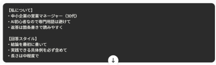 自分向きに一度設定すれば、毎回説明しなくても自分向けの回答を返してくれるようになります。